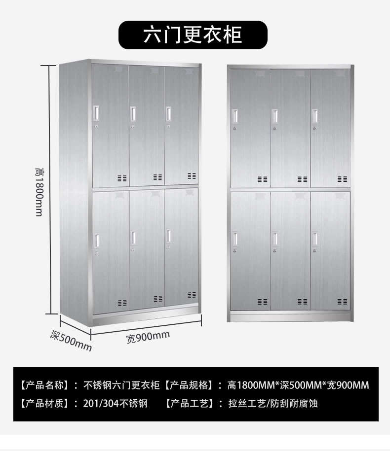 不銹鋼更衣柜6門